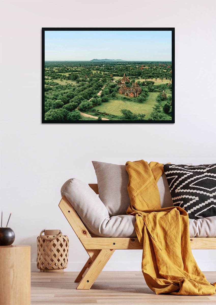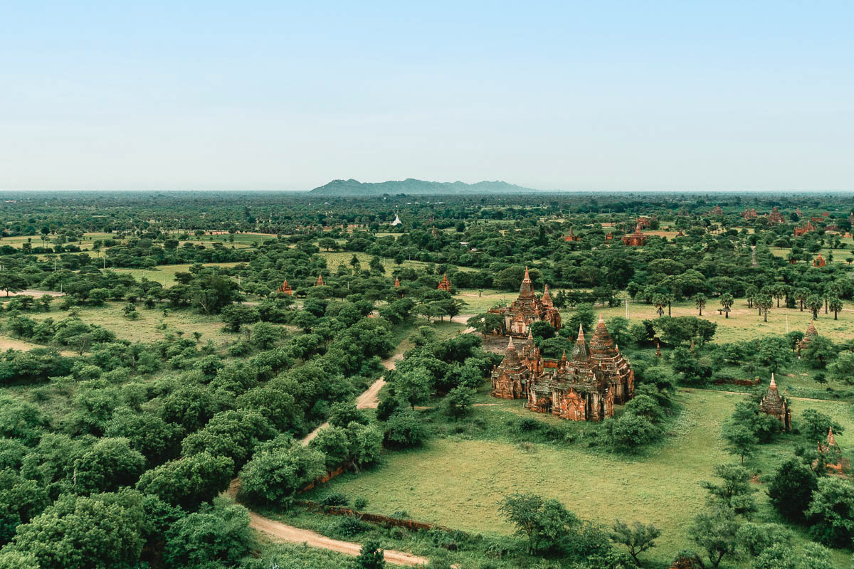 An impressive view from the Nann Myint Tower overlooking Old Bagan showing some of the thousands of temples and pagodas built there, with Mt. Popa in the background.